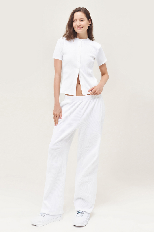 Casual Short Sleeve Button Slim Top & Wide Leg Trousers Co-ord