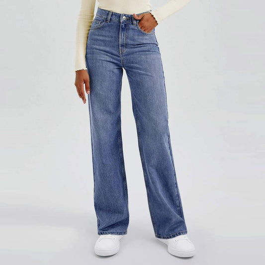 Trendy Minimalist High Waist Denim Stretch Wide Leg Jeans