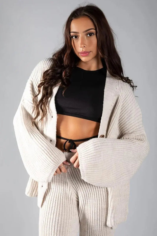 Casual Knit V Neck Cardigan & Loose Trousers Co-ord