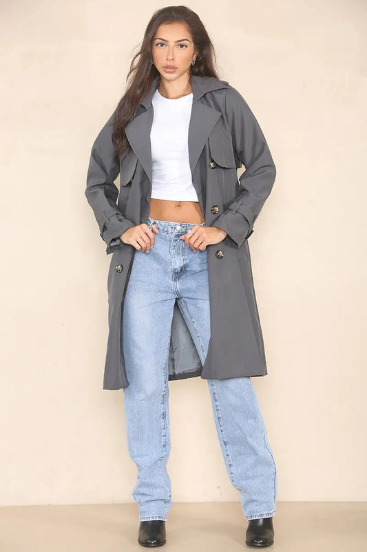 Classy Notch Lapel Double Breasted Belt Decor Trench Coat